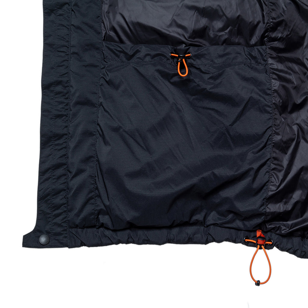 ダウンパックを入れないことで素材の柔らかさと軽さを生かしました。ダウン:約220g入り。