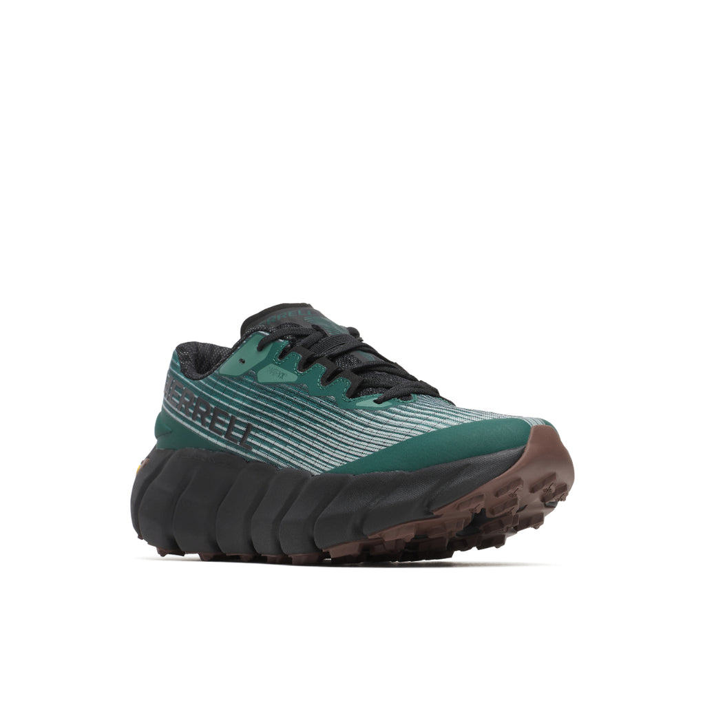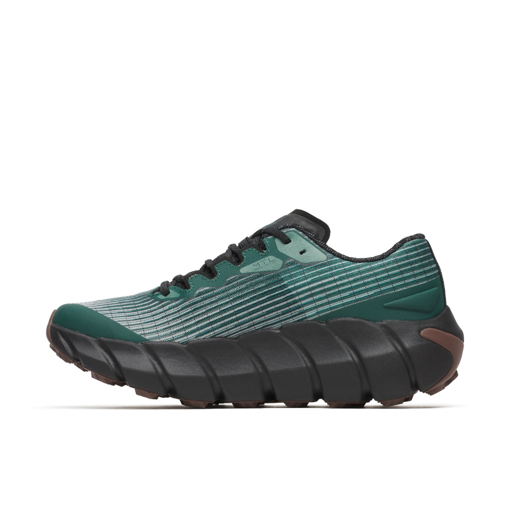 ブランドテクノロジーを結集させた”Merrell Test Lab. (メレルテストラボ)”発のトレイルランニングシューズ フラッグシップライン。超軽量で耐摩耗性に優れた最先端アッパーと超臨界発砲フォーム+Vibram最高峰グリップの高機能ソールユニットを搭載したウルトラディスタンス推奨モデル。アッパーには、優れた耐摩耗性を誇る「MATRYX® (マトリックス®)」を纏わせることで、ラギッドなフィールドコンディションでもアッパーの破れなどを気にすることなく、圧倒的な軽量性と通気性、耐久性を以て、よりアグレッシブな攻めの走りを実現させます。またミッドソールには、クッション性や機能持続性をさらにアップデートさせた超臨界発泡フォーム「FLOATPRO+™ (フロートプロプラス™)」を採用。外見のイメージに反し柔らかすぎず、着地・蹴り出し時の軽快な地面離れの良さや安定性に特に優れている。アウトソールには、濡れた路面やラギッドなトレイルで最高レベルのグリップ性を発揮する"Vibram MEGAGRIP × Vibram TRACTION LUG" アウトソール (ラグ深4mm) を搭載。高機能テクノロジーが3拍子揃ったロングディスタンス向け最高峰モデル。