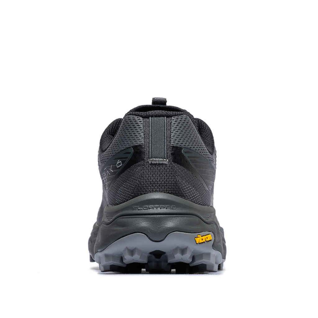 アッパーには、軽量で通気性、耐摩耗性に優れた“Leno Weave (レノ・ウィーブ)”を採用。伸縮性が低く、フィールドにおける激しい動きの際も足室内での足の無駄な遊びを抑えます。さらにアッパーサイドやシューレースホールまわりに配置されているTPUオーバーレイ補強も、設計やその面積を見直し、外的要因から足を保護するため耐久性を強化。ミッドソールには、相反する軽量性と耐久性(機能持続性)を合わせ持ち、反発弾性・クッション性に優れたサステナブルEVAフォーム“FLOATPRO™(フロートプロ)”を採用。また、ミッドソール内側上部に縦横のアシストラインを入れた“FLEXCONNECT™(フレックスコネクト)”構造により、路面の凹凸に応じてしなやかにソールを屈曲させ、スムーズな足の動きを助けます。併せて、ミッドソール足底部のフォアフット側1/2に、ESSロックプレートを張り合わせ、着地時における地面からの突き上げに対応し、さらに足裏の“面安定感”に寄与します。アウトソールには、世界有数のイタリアのソールメーカー「Vibram (ヴィブラム)」屈指のハイパフォーマンスグリップ“Vibram MEGAGRIP (ヴィブラム メガグリップ)”と、トラクション性・安定性を高めるVibram最新特許技術のラグ形状“Vibram TRACTION LUG (ヴィブラム トラクションラグ)”を全ラグに搭載し、さらにこだわりのラグパターン設計とラグ深5mmにより厳しいフィールドコンディションでも最高レベルのグリップ力を発揮します。この1足でショートからロングディスタンス、またはテクニカルな山岳地帯までオールインワンで活躍します。