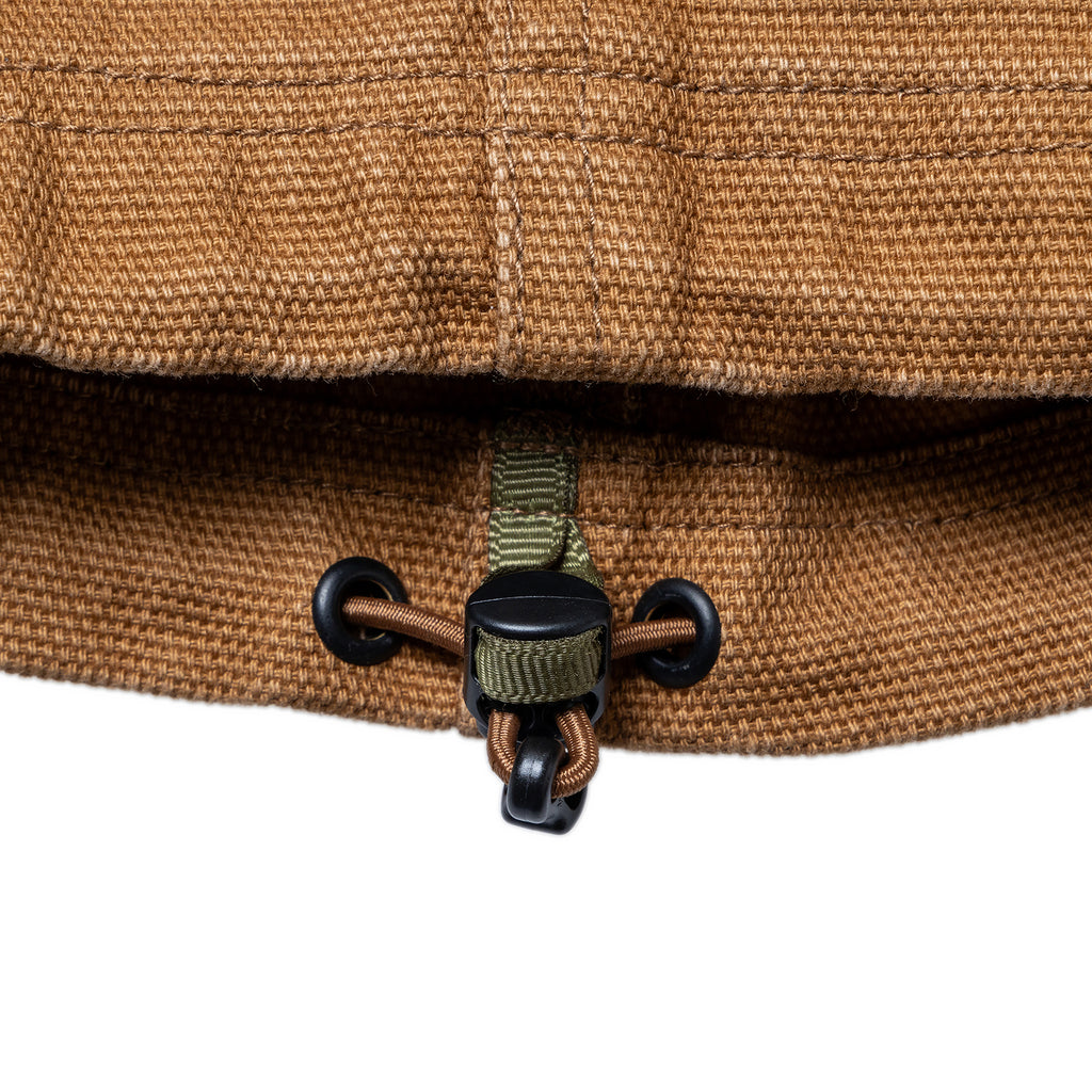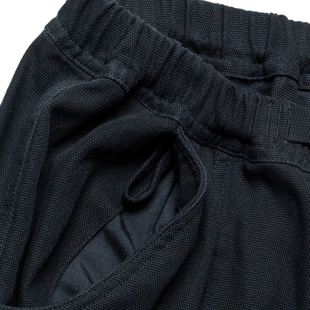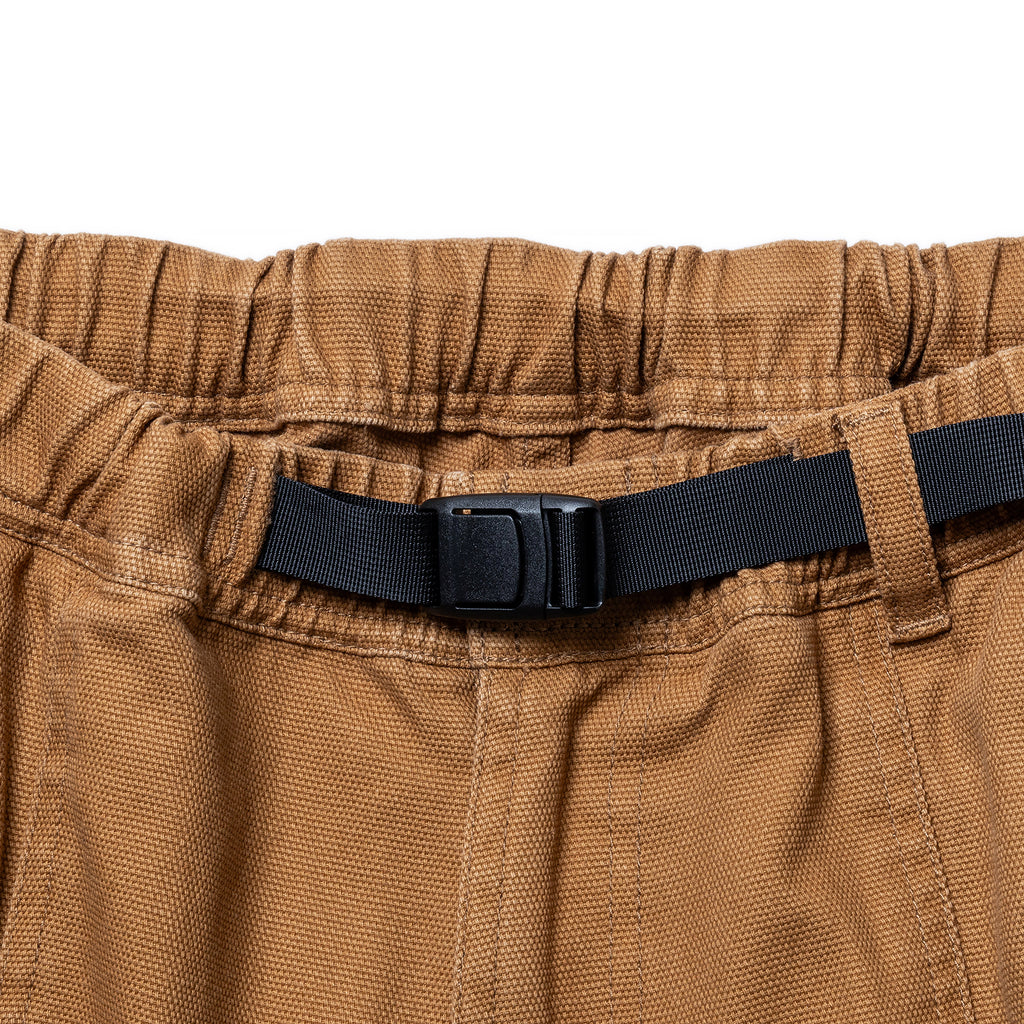 ウエストはウェビングベルトで調整可能で、ベルト先にはMロゴのオリジナル織りネームを作成して付けました。