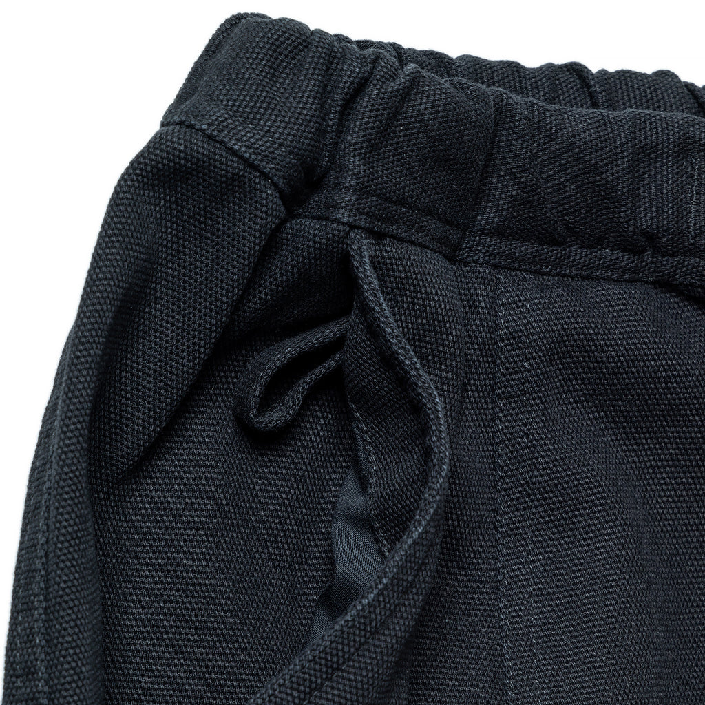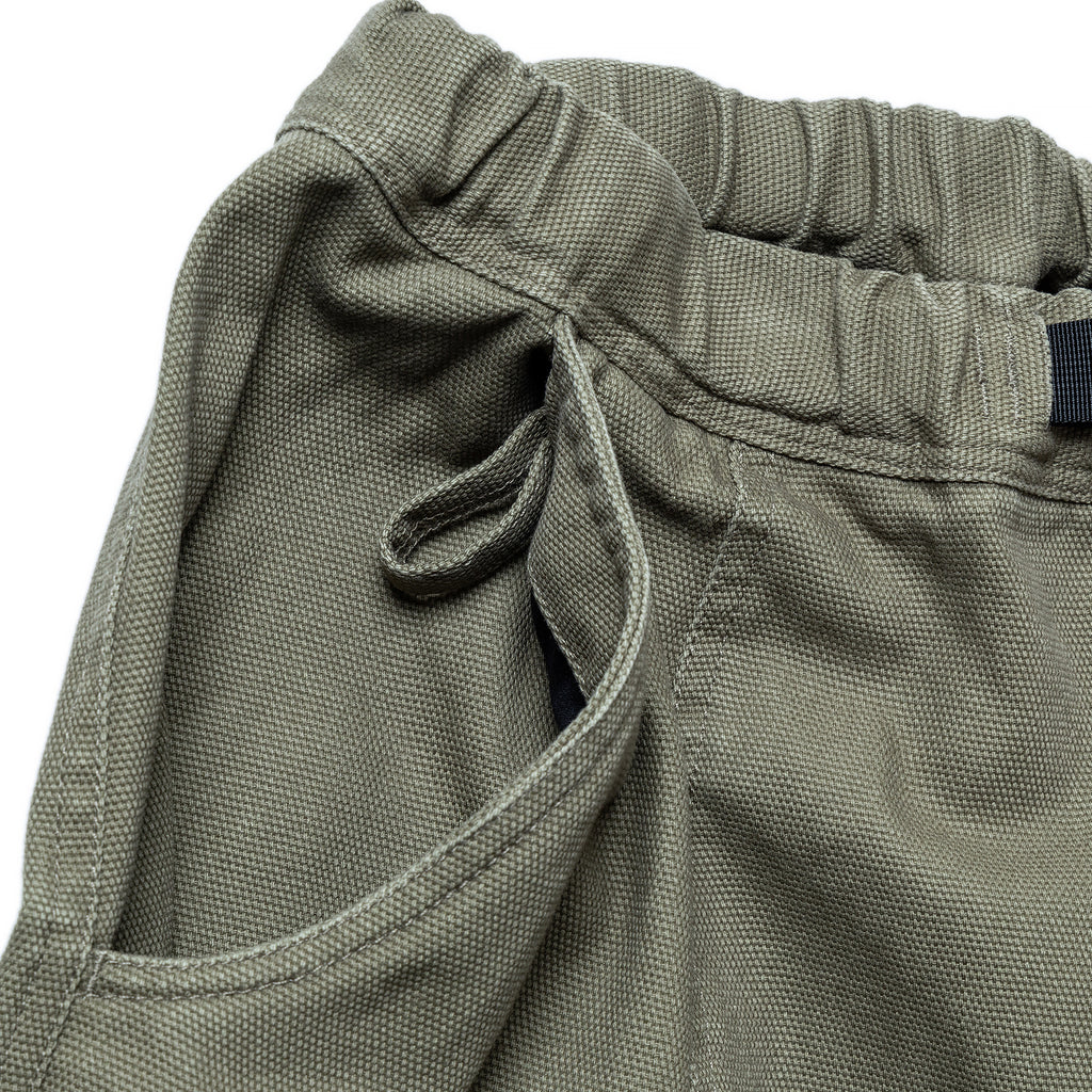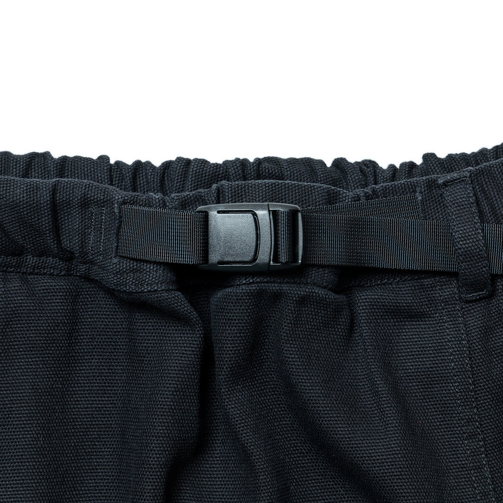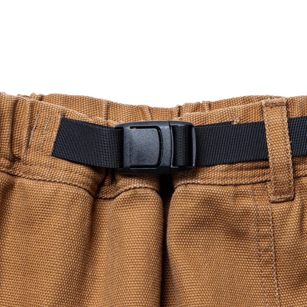 ウエストはウェビングベルトで調整可能で、ベルト先にはMロゴのオリジナル織りネームを作成して付けました。