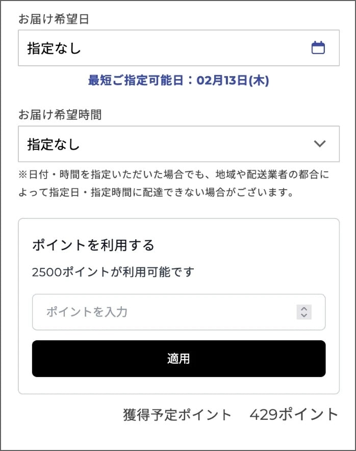 ※お会計金額以上のポイントを保有している場合、商品代金のみポイント全額でのお会計が可能です。