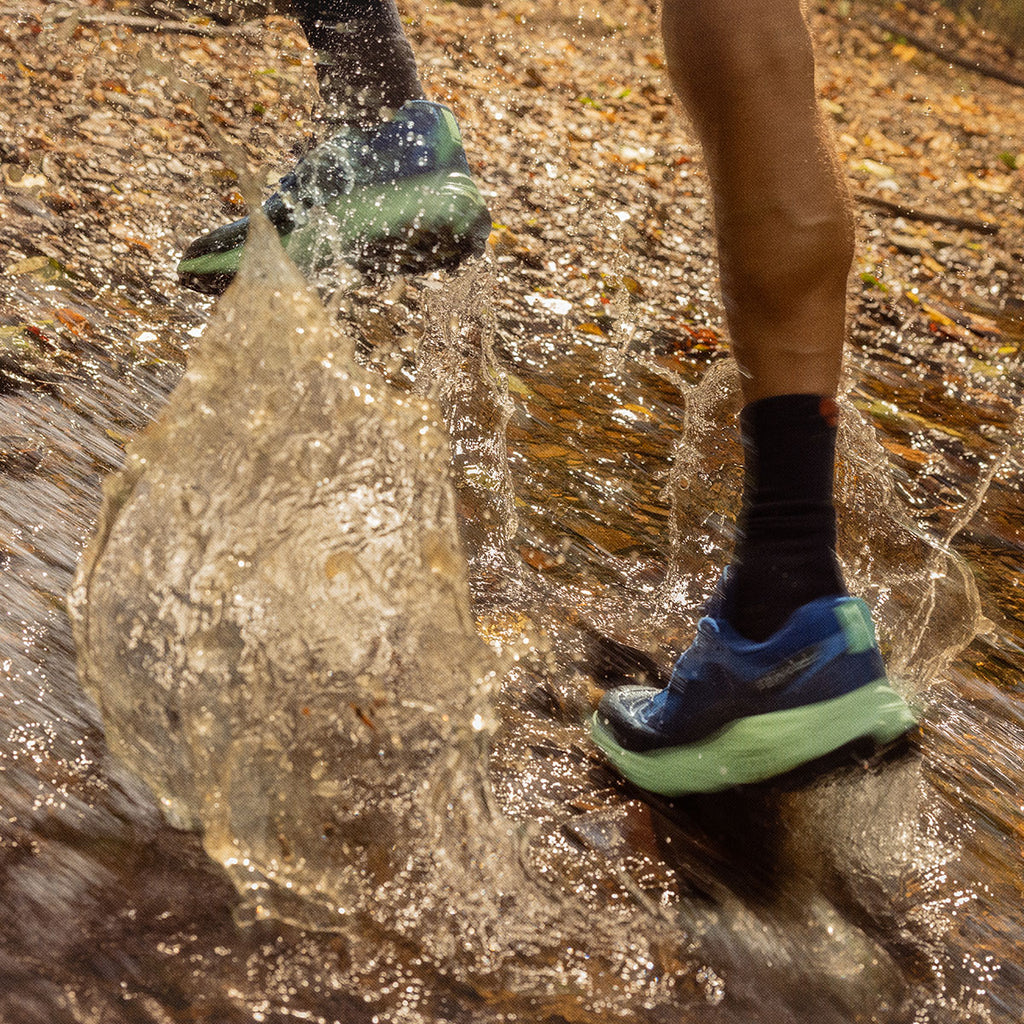 イタリアの世界的ソールメーカー「Vibram」屈指のハイパフォーマンスコンパウンドグリップ。濡れた路面や起伏のある地形で高いグリップ性を誇る。機能性を最大限発揮させるため、こだわりのラグパターンを採用し、グリップ性アップと軽量化を実現。ミッドソールへの接着構造もアップデートし、安定性と耐久性を向上。