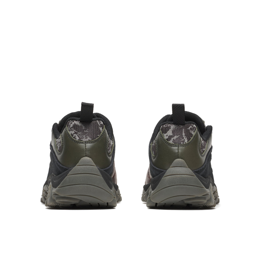 「MOAB 2 REMIX LEATHER」は、MERRELLを象徴するハイキングアイコン「MOAB」を、1TRLの視点で再構築したリミックスモデルです。長年受け継がれてきたMOABのDNAを核に、アシンメトリー構造と重層的な素材使いによって、新たなビジュアルランゲージを与えています。スエードレザーをベースに、フルグレインレザーのトリム、通気性に優れたメッシュパネルを組み合わせたアッパーは、無骨さと洗練が同居する表情に。オープンメッシュには、クラフト感を想起させる繊細なモチーフを落とし込み、タフな機能性の中に静かな装飾性とアーカイブニュアンスを忍ばせています。また、アシンメトリーなレース構造は、フィット感を高めながら現代的なアクセントとして機能します。カラーとテクスチャーには、レースやヴィンテージファブリックから着想を得た「2 Tone Torn Camo(迷彩モチーフを分解・再構成したツートーン表現)」を採用。文化的背景を感じさせるこのデザインが、MOABの実用性に新たな文脈を与えます。足元には信頼性の高いMOABのソールユニットをそのまま継承し、サステナブル素材を取り入れながら、現代のライフスタイルに適応したパフォーマンスへと進化させた1足です。