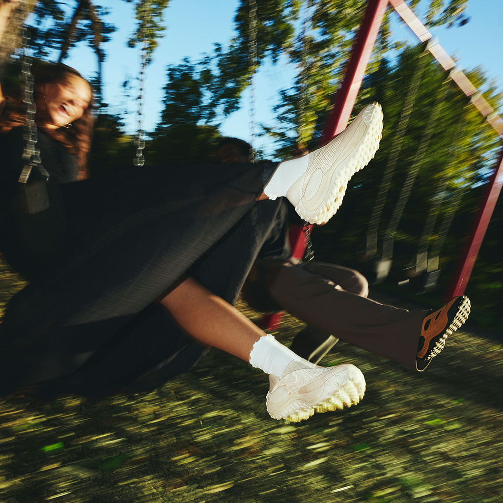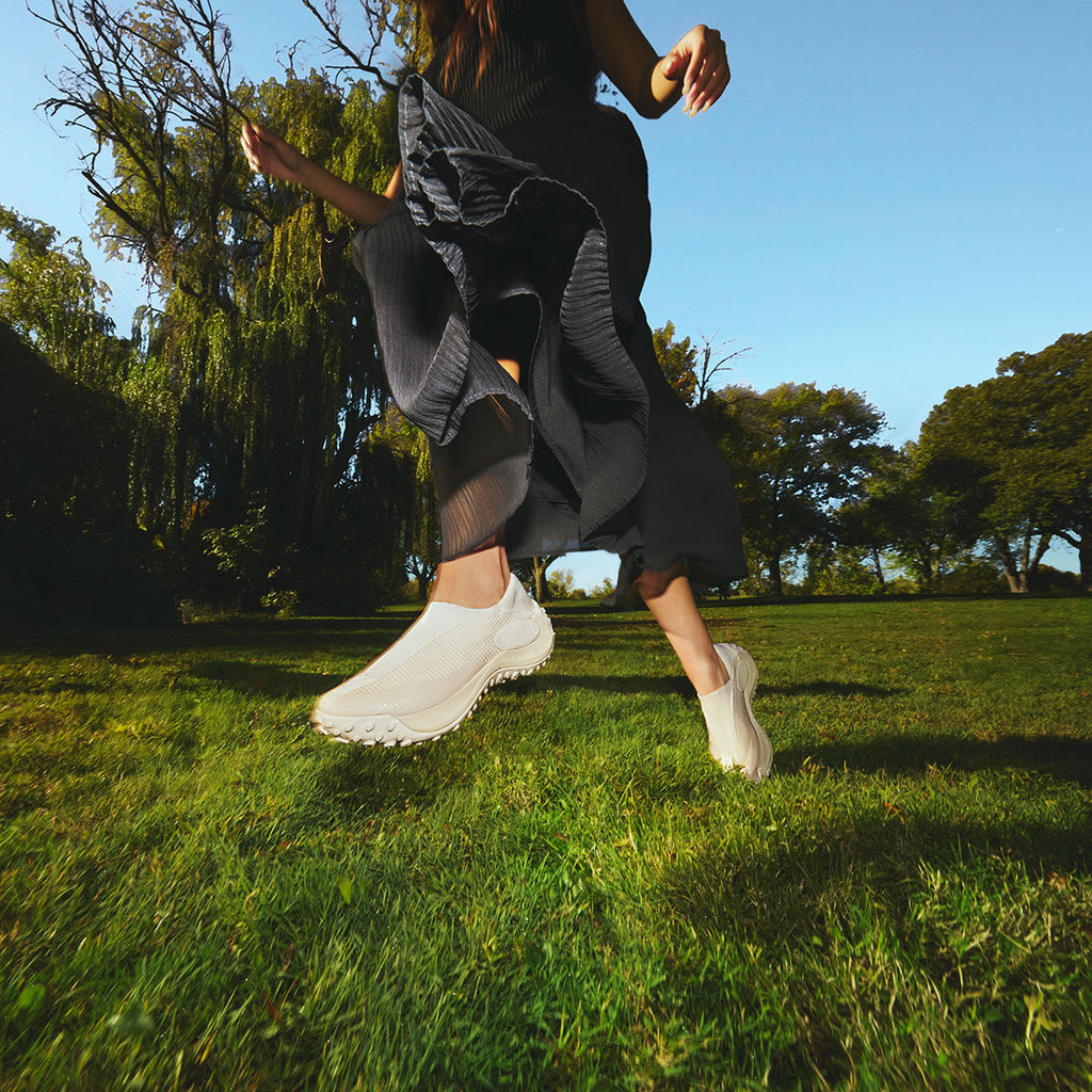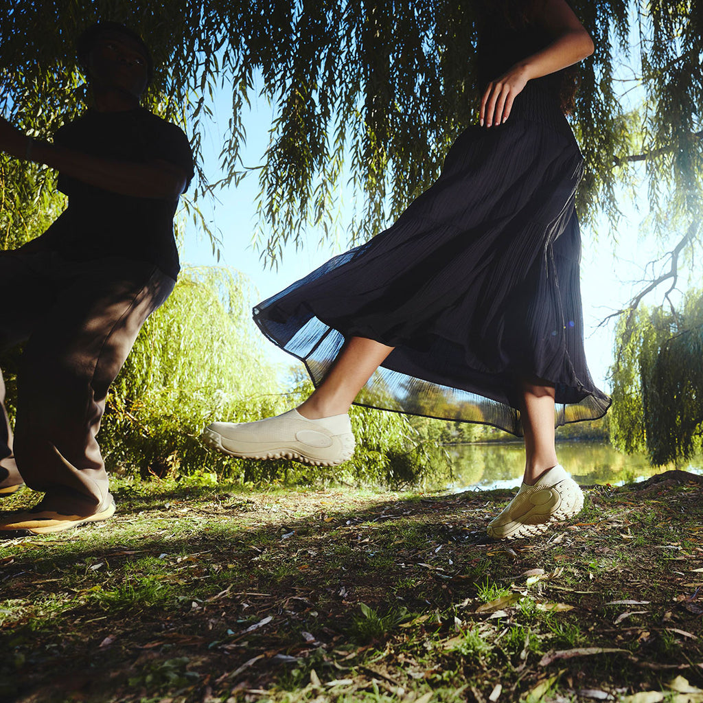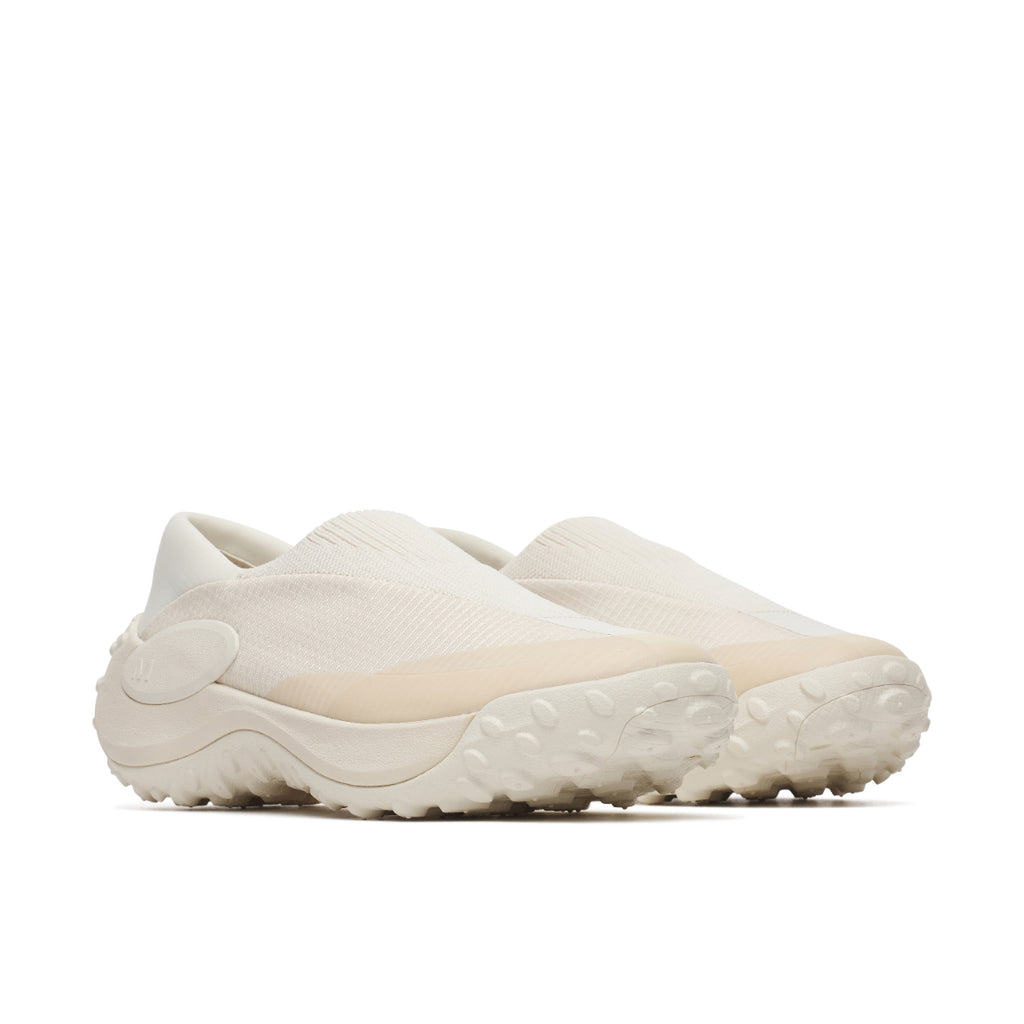 「Jungle Trek Moc」は、MERRELL(メレル)を象徴するアイコン「Jungle Moc」の精神を受け継ぎながら、現代のライフスタイルに合わせて再構築された一足です。アウトドア由来の合理性と、都市生活に馴染む佇まい、その両立こそが本作の核となっています。モック構造ならではの気軽さはそのままに、アッパーには通気性に優れたニットとメッシュ素材を採用。足を包み込むようなフィット感と、軽快な履き心地が、日常の動作をよりスムーズにします。摩耗しやすい箇所には3DプリントとTPUオーバーレイを配し、機能性をデザインとして昇華しました。ミッドソールには、パフォーマンスライン由来のFloatMax™フォームとFLEXconnect®を搭載。柔らかな足当たりと自然な屈曲性が、歩くという行為そのものを快適にアップデートします。「Jungle Trek Moc」は、「Jungle Moc」の”楽に履ける”という価値を、現代の感覚で磨き直した存在であり、フィールドと都市、その境界線を軽やかに行き来する、新しい日常の定番です。